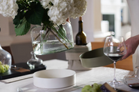 Elevate your home decor with the Bloom Vase Trio. Designed to blend seamlessly with any style, this versatile vase is one-of-its-kind. This clear wide-mouth vase comes with three interchangeable metal trays in white, sage green and merlot red, allowing you to customize its appearance to suit your stems. With a simple switch, you can effortlessly transform the vase to harmonize with any setting, making it the perfect statement piece for your home.